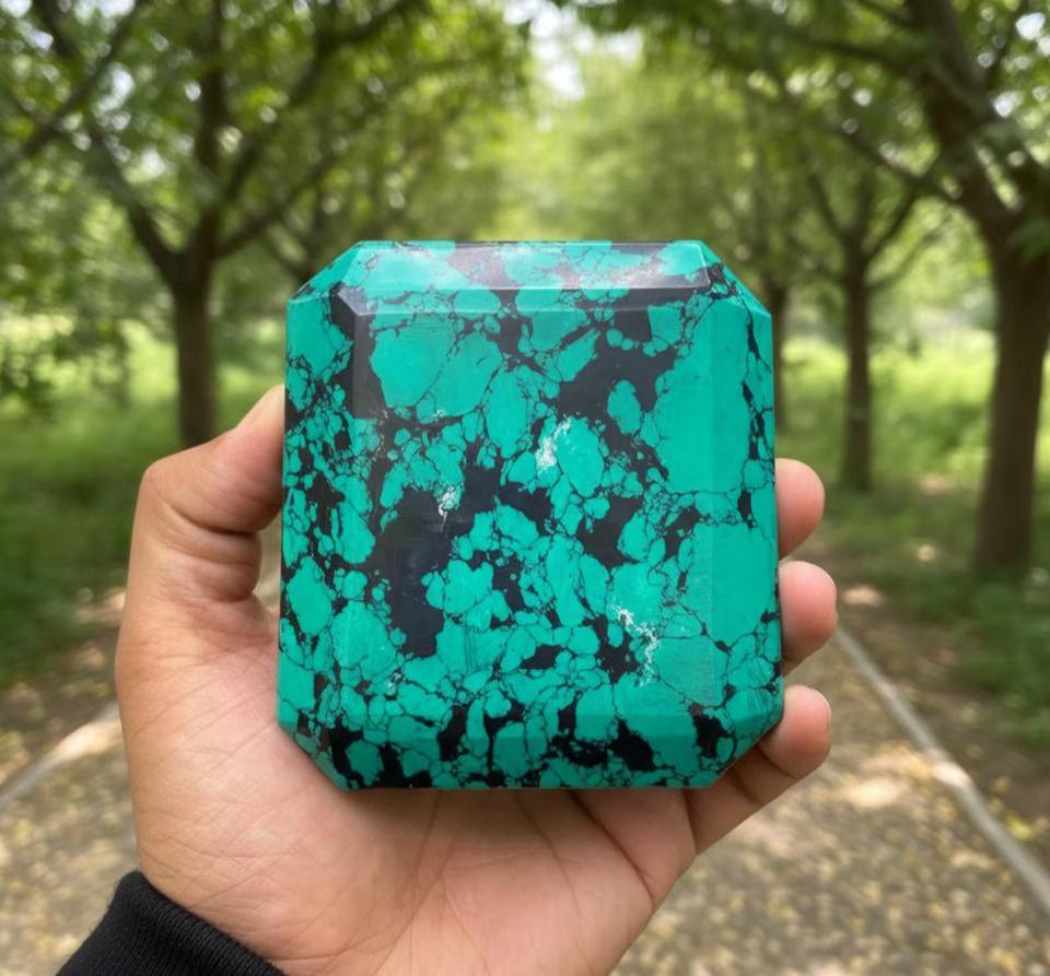 พลอยเทอร์ควอยซ์รูปทรงสี่เหลี่ยมผืนผ้าแบบอุ่น ราคาขายส่งจากอินเดีย มีจำหน่าย คริสตัลรูปทรงข้าวหลามตัดสำหรับบำบัดรักษา แกะสลักลายเพชร เหมาะสำหรับเป็นของขวัญสำหรับการทำสมาธิ