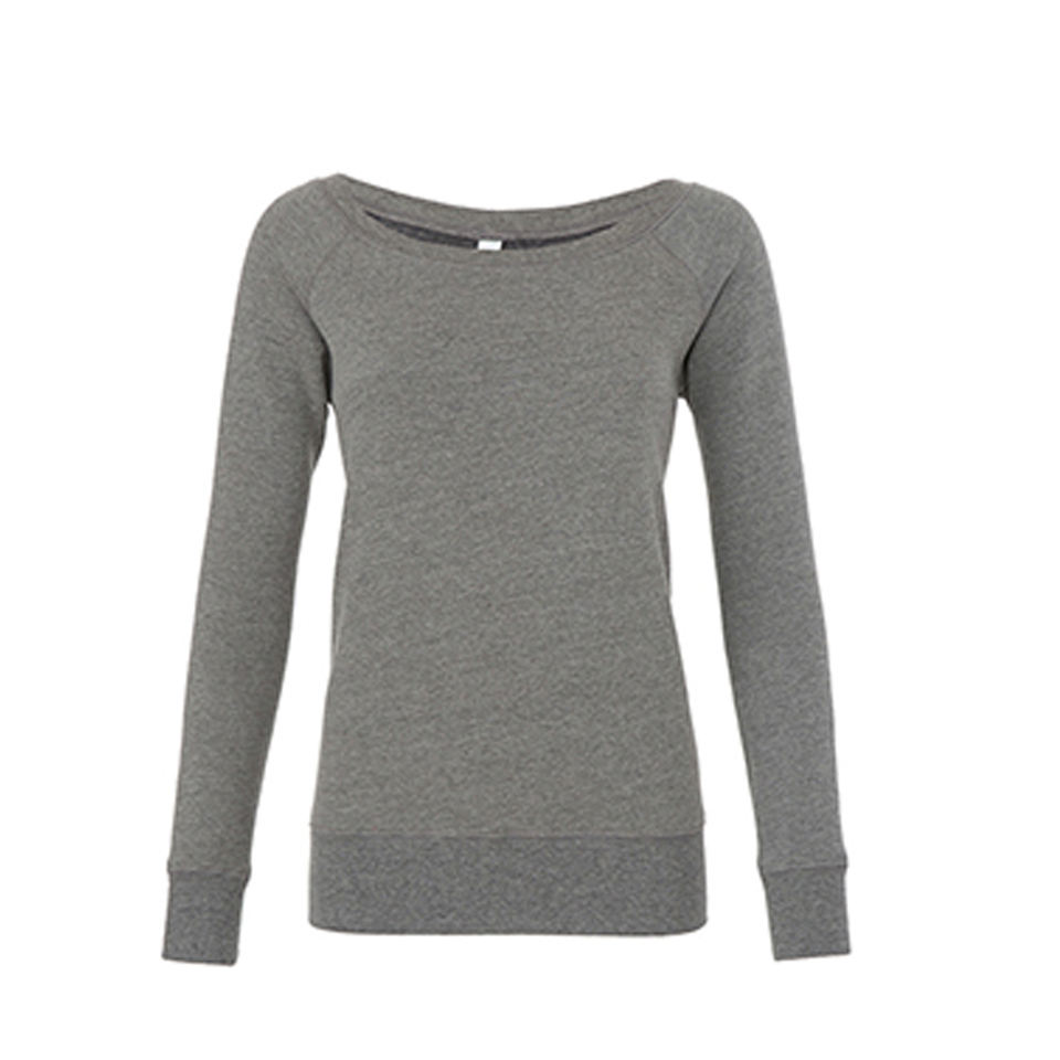 เสื้อสเวตเชิ้ตผู้หญิง แบรนด์ Bella Canvas รุ่น Winter Front Logo ลาย 3 มิติ ป้องกันขนร่วง ผ้าฟลีซฟองน้ำสีเทา อุ่นสบาย คอเสื้อกว้าง