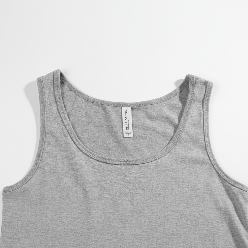 เสื้อแขนกุดผ้าแคนวาสสีเทาเฮเทอร์เบลล่าสำหรับทั้งชายและหญิงดีไซน์แบบสามผสมทำจากผ้าฝ้ายสร้างแบรนด์ของคุณเอง