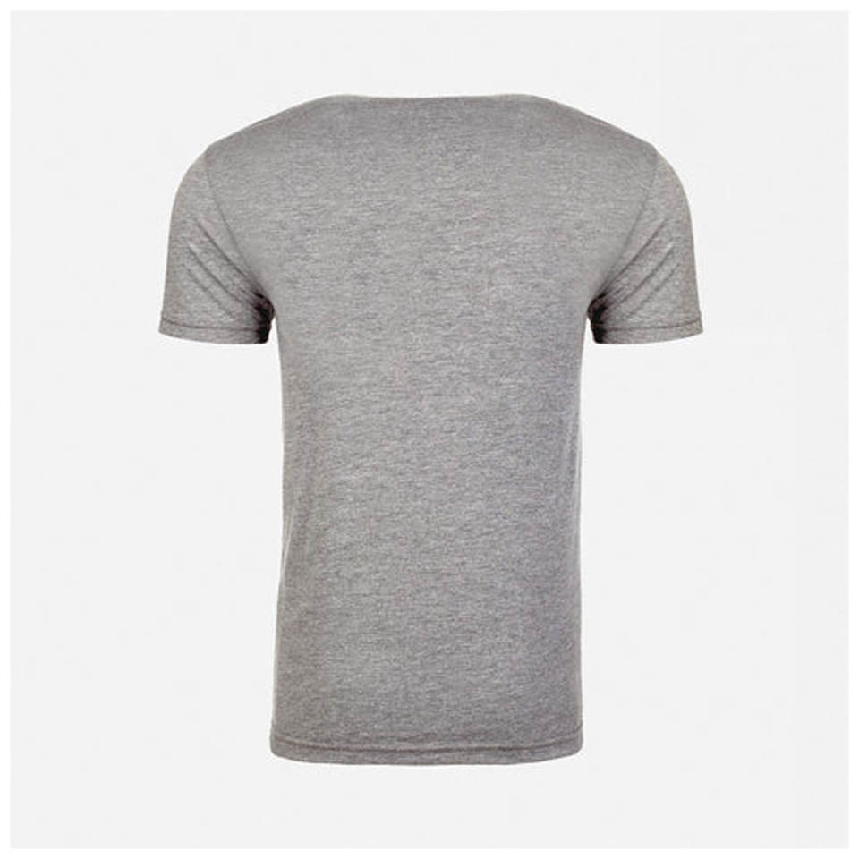 เสื้อยืดเฮเธอร์เกรย์ ไตรเบลนด์ 50% โพลีเอสเตอร์, 25% ผ้าฝ้าย, 25% เรยอน ไตรเบลนด์
