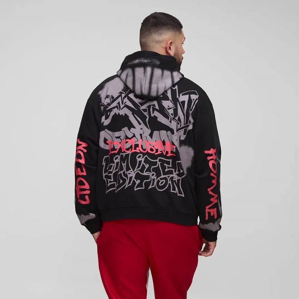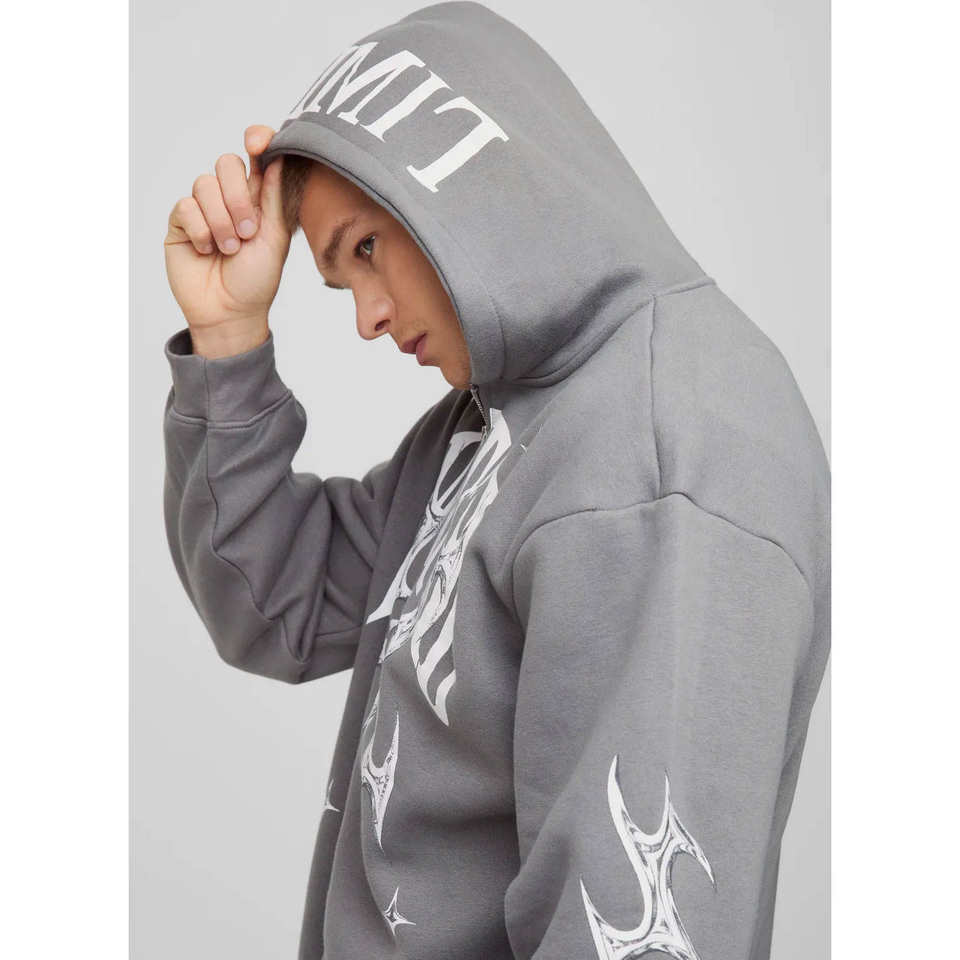 เสื้อฮู้ดซิปพิมพ์ลายพรีเมียมสีเทาเฮเธอร์สำหรับผู้ชาย ผ้าฝ้ายผสมเนื้อหนา ระบายอากาศได้ดี แบบซิปเต็มตัว