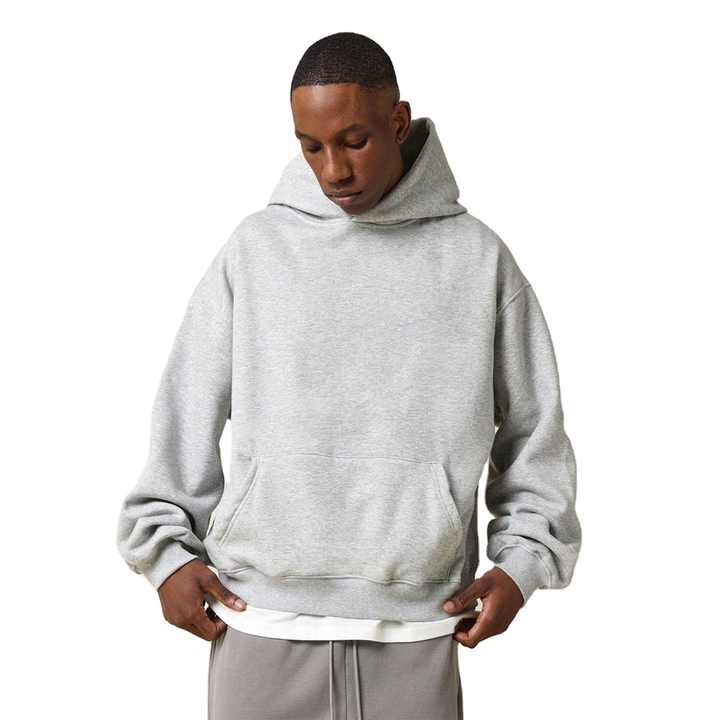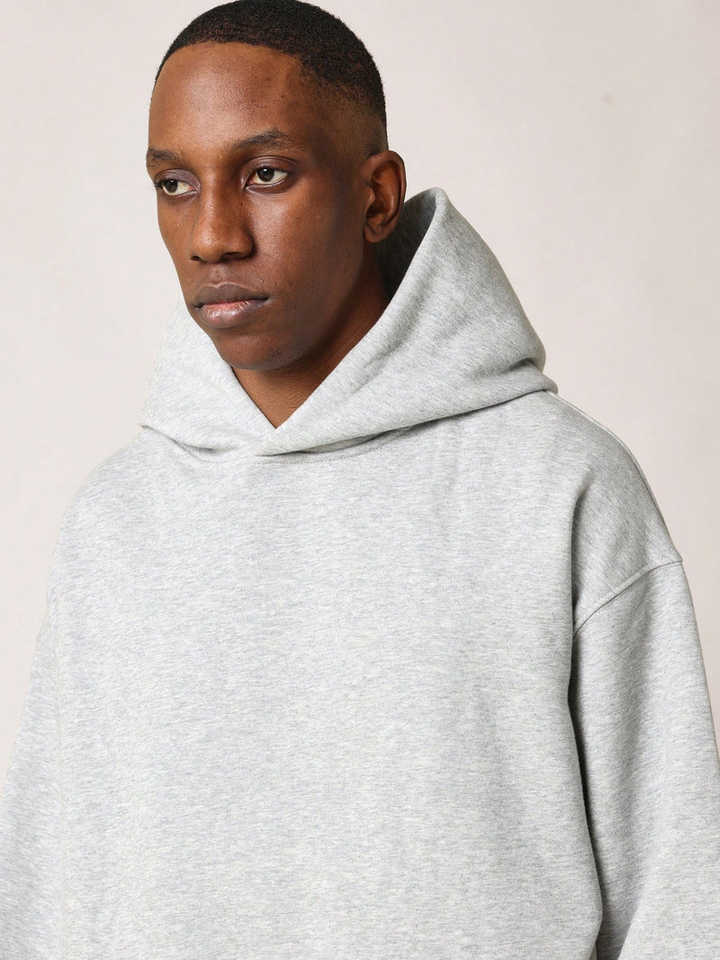 เสื้อฮู้ดดี้เฮเธอร์เกรย์ทรงโอเวอร์ไซส์ ผ้าหนา 100% ผ้าฝ้าย ซิปหน้า สำหรับผู้ชายและผู้หญิง สกรีนโลโก้ได้ น้ำหนัก 500GSM ระบายอากาศได้ดี แห้งเร็ว เหมาะสำหรับฤดูหนาว สีพื้น