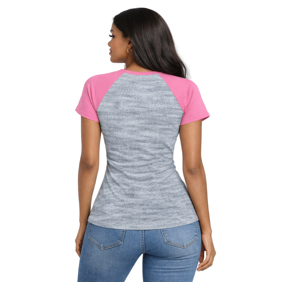 เสื้อยืดแขนแร็กแลน Heather Grey Soror สีชมพู-เขียว สำหรับสตรี ฤดูร้อน เป็นมิตรกับสิ่งแวดล้อม สไตล์ลำลอง ทันสมัย เหมาะสำหรับนักศึกษาและพี่น้องในสมาคมนักศึกษา