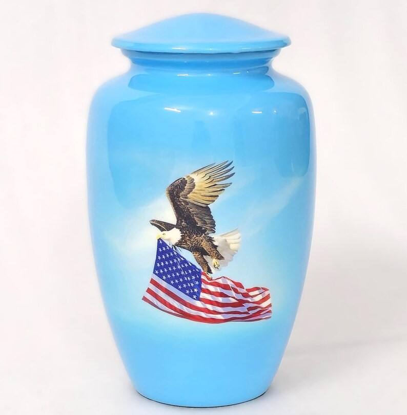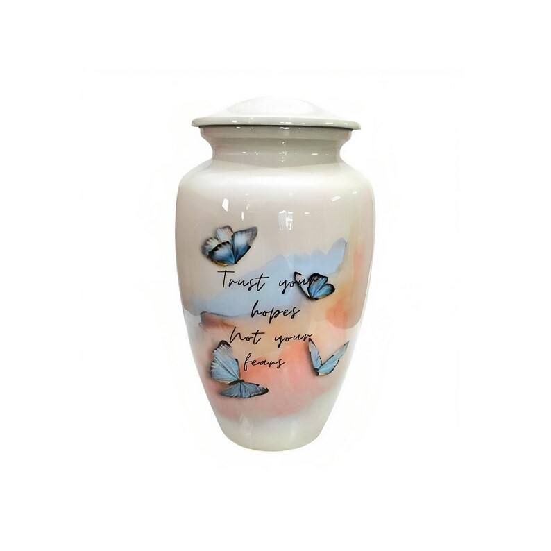 โกศรำลึกพร้อมฉากบันไดสวรรค์ งานศิลปะเมฆวิญญาณ และถุงกำมะหยี่สำหรับใส่เถ้ากระดูกผู้ใหญ่