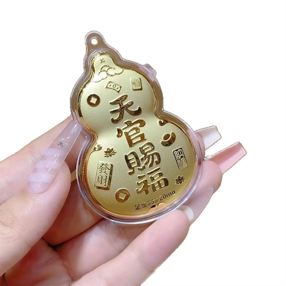 พวงกุญแจโทรศัพท์มือถือรูปน้ำเต้าทองคำแท้ 999 ของขวัญตกแต่งขนาดเล็กสไตล์เดียวกับน้ำ