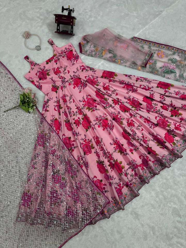 Butterfly Net Sequence Embroidery Top And Gown With Dupatta