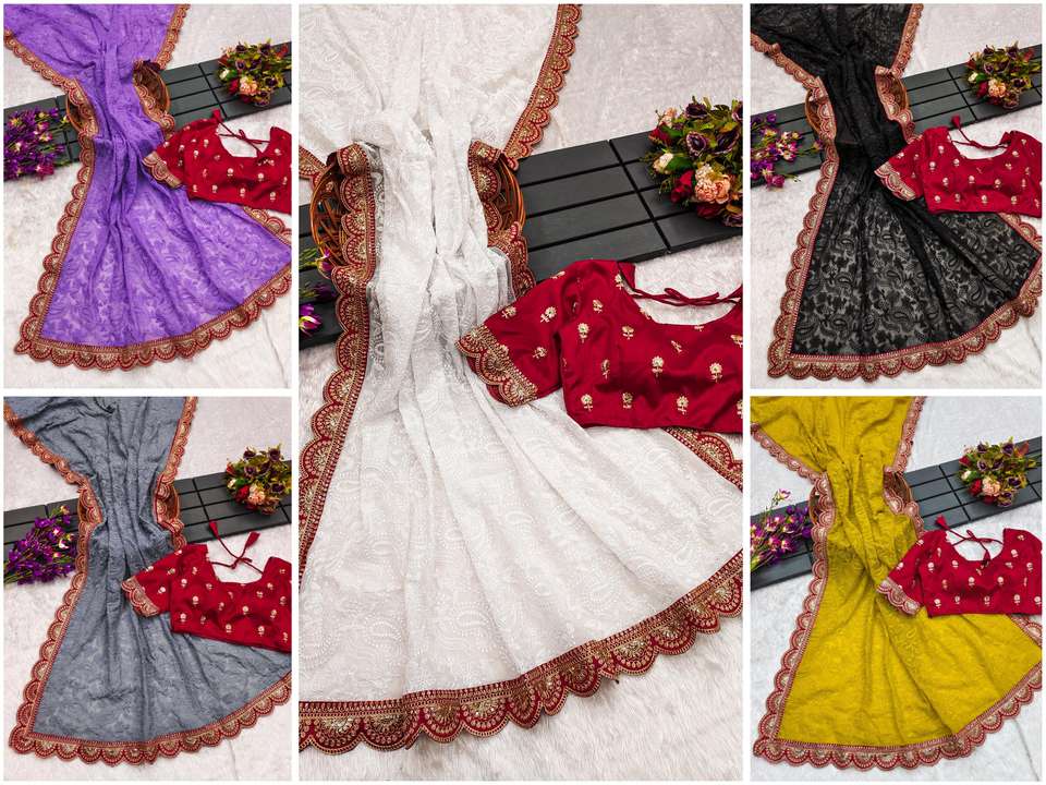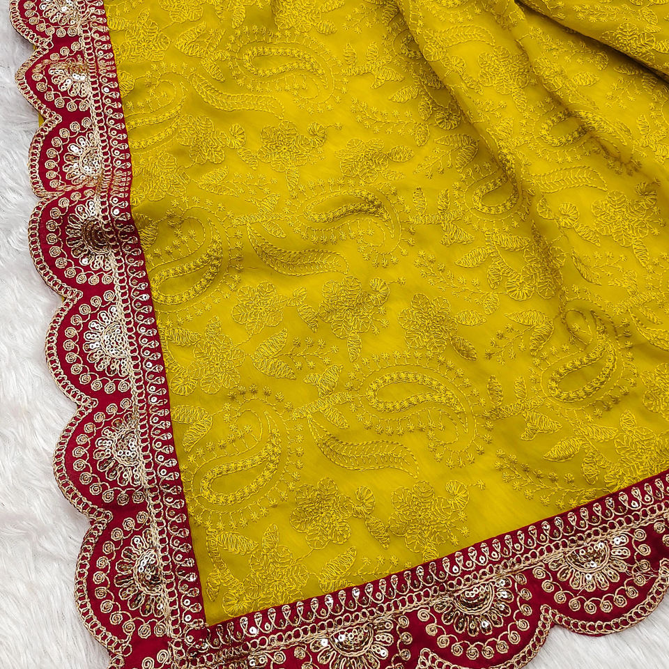 ชุดส่าหรีงานชิคันการีแบบหนักสำหรับงานแต่งงานและงานปาร์ตี้สำหรับเด็กผู้หญิง พร้อมด้วยงานปักดิ้นทองและเลื่อมสวยงาม ชุดส่าหรีแบบดั้งเดิมสำเร็จรูป