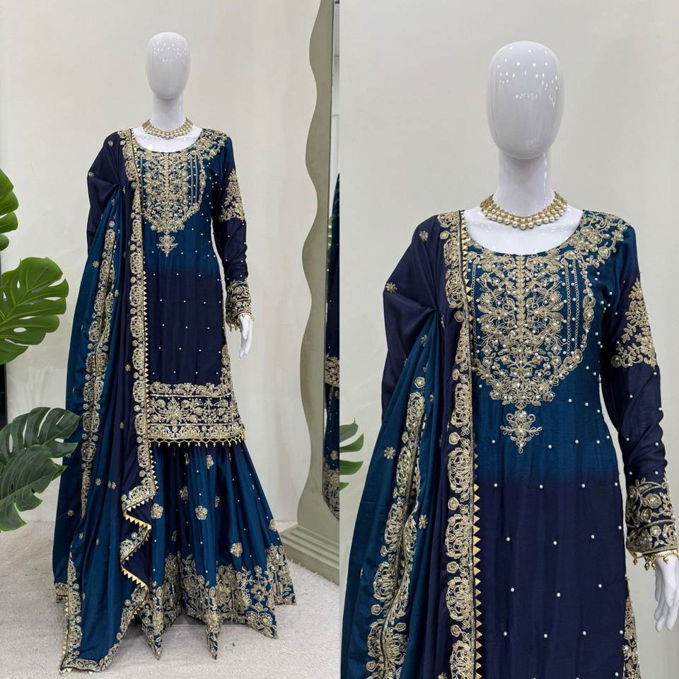 ชุดเดรสผ้าไหมชิโนนเนื้อหนา พิมพ์ลายดิจิทัล ประดับด้วยงานปักเลื่อม พร้อมผ้าคลุมไหล่ สำหรับงานแต่งงาน งานเลี้ยง สินค้าจากอินเดีย ขายส่ง