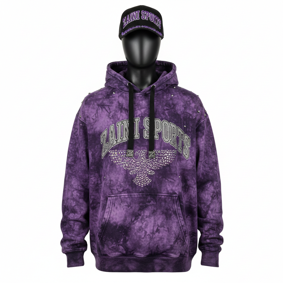 เสื้อฮู้ดดี้ผ้าคอตตอนหนานุ่มสีม่วงฟอกสีแบบแอซิดวอช แต่งด้วยผ้าฟลีซเนื้อนุ่ม ประดับด้วยคริสตัล โลโก้สั่งทำได้ ทรงพอดีตัว สวมใส่สบาย เหมาะกับแฟชั่นพื้นฐานทันสมัย