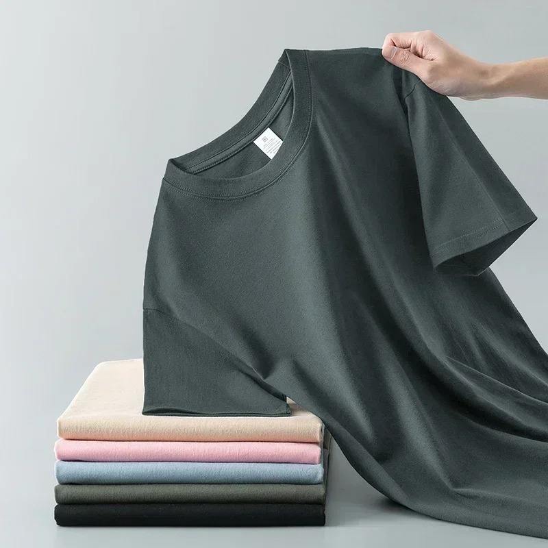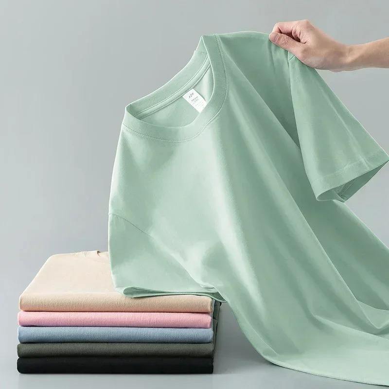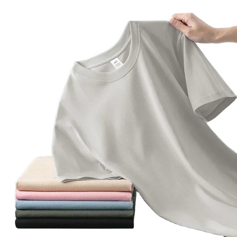 เสื้อยืดแขนสั้นของผู้ชายผ้าคอตตอนสีพื้นเสื้อยืดผ้าฝ้ายขนแกะยาว100% ครึ่งแขนสำหรับฤดูร้อน