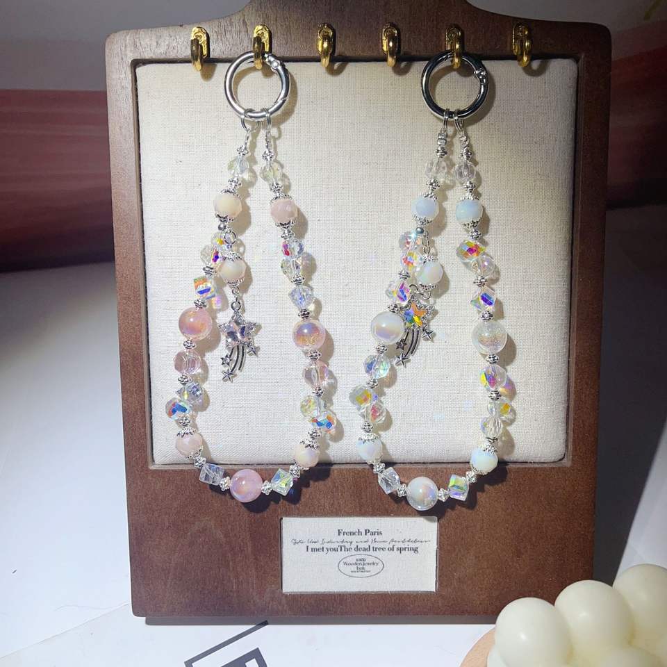 จี้คริสตัลรูปโบว์สีชมพูผสมลูกปัดสำหรับผู้หญิงสุดสร้างสรรค์ประดับพลอยเทียมระดับไฮเอนด์