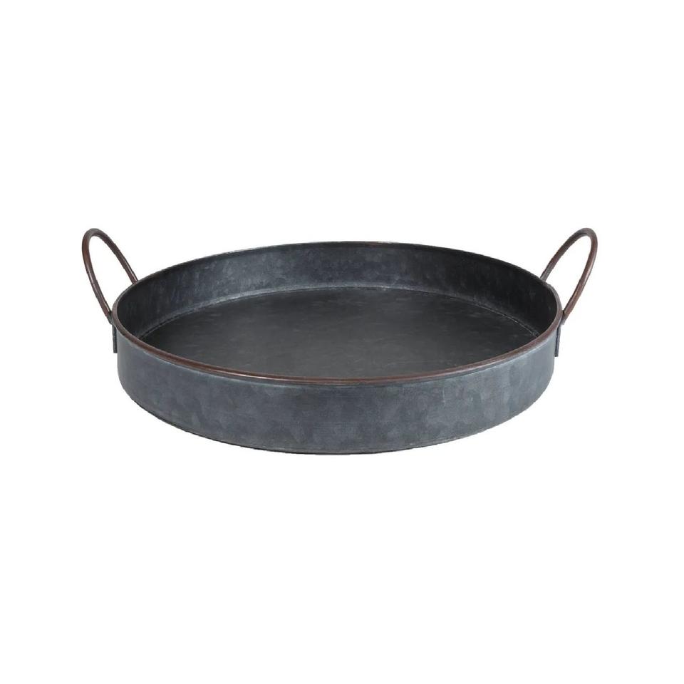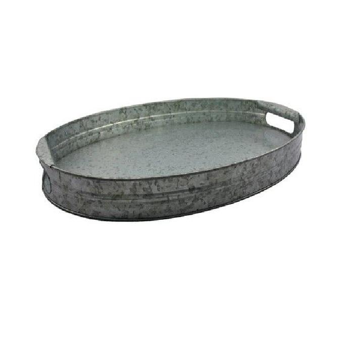 ถาดเสิร์ฟอาหารเหล็กชุบสังกะสีพร้อมที่จับเชือกถาดเสิร์ฟอาหารบนโต๊ะสำหรับบ้านและโรงแรมดีไซน์หนัก