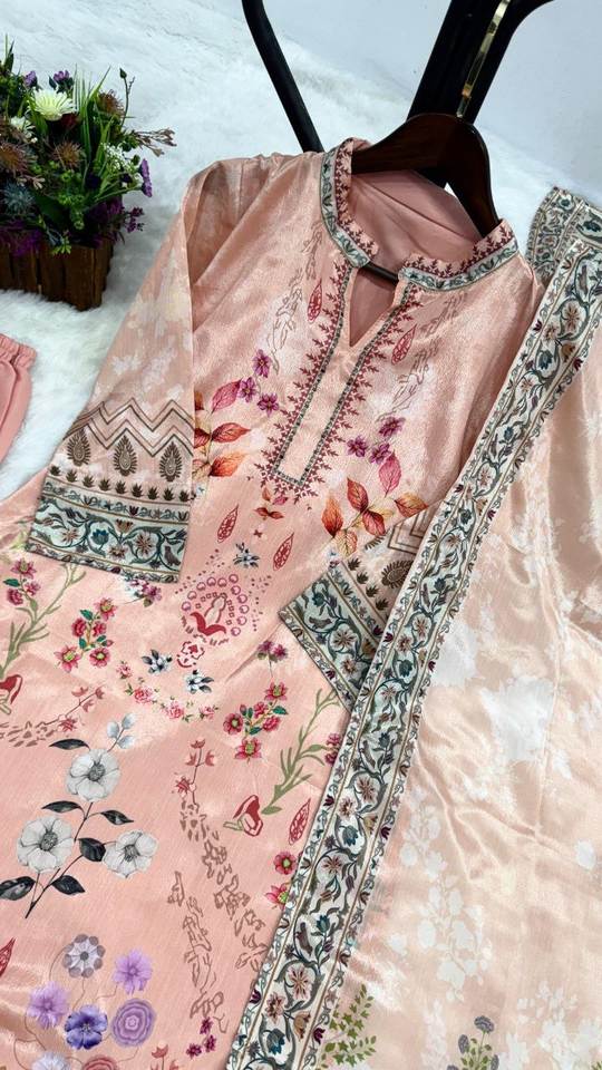 Product Name:Chinon Silk Digital Print Top & Palazzo With Dupatta
