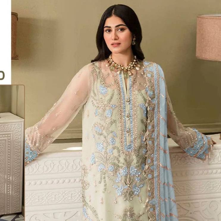 ชุดเดรสปักลายดีไซน์เนอร์งานหนักแบบกึ่งสำเร็จรูป สำหรับงานปาร์ตี้ ชุดแบบดั้งเดิม ผ้าจอร์เจตต์