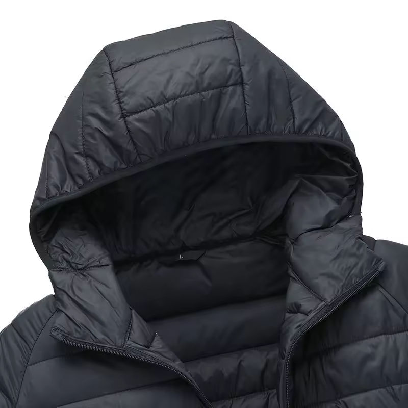 แจ็กเก็ตขนเป็ดแวววาวสีดำสำหรับผู้ชายโอเวอร์ไซซ์สีพื้นปกตั้งออกแบบได้ตามที่ต้องการสำหรับฤดูหนาว