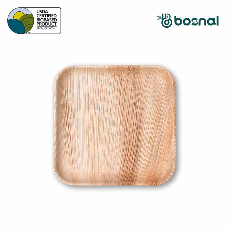 Heavy Duty 10-Inch Square Palm Leaf Biodegradable Plates 25 PCS Restaurant Grade Earth Compostable Bamboo Wood Style Stackable