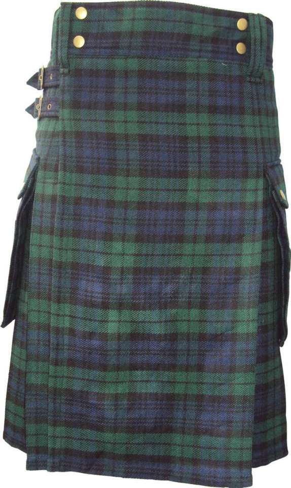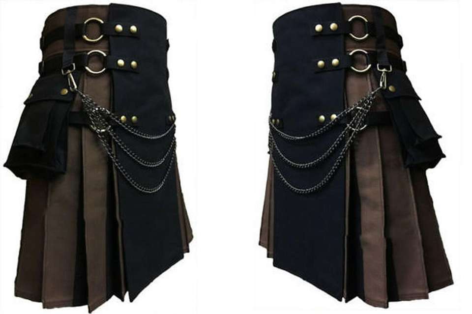 หนัก100% ฝ้ายสีดำยูทิลิตี้ Kilt กับสายหนัง