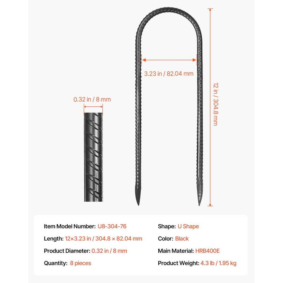 สมอบกเหล็กชุบสังกะสีรูปตัวยูขนาด 12 นิ้ว หนัก ทนทาน เส้นผ่านศูนย์กลาง 0.32 นิ้ว ป้องกันสนิม สำหรับยึดเต็นท์ ปลายแหลม
