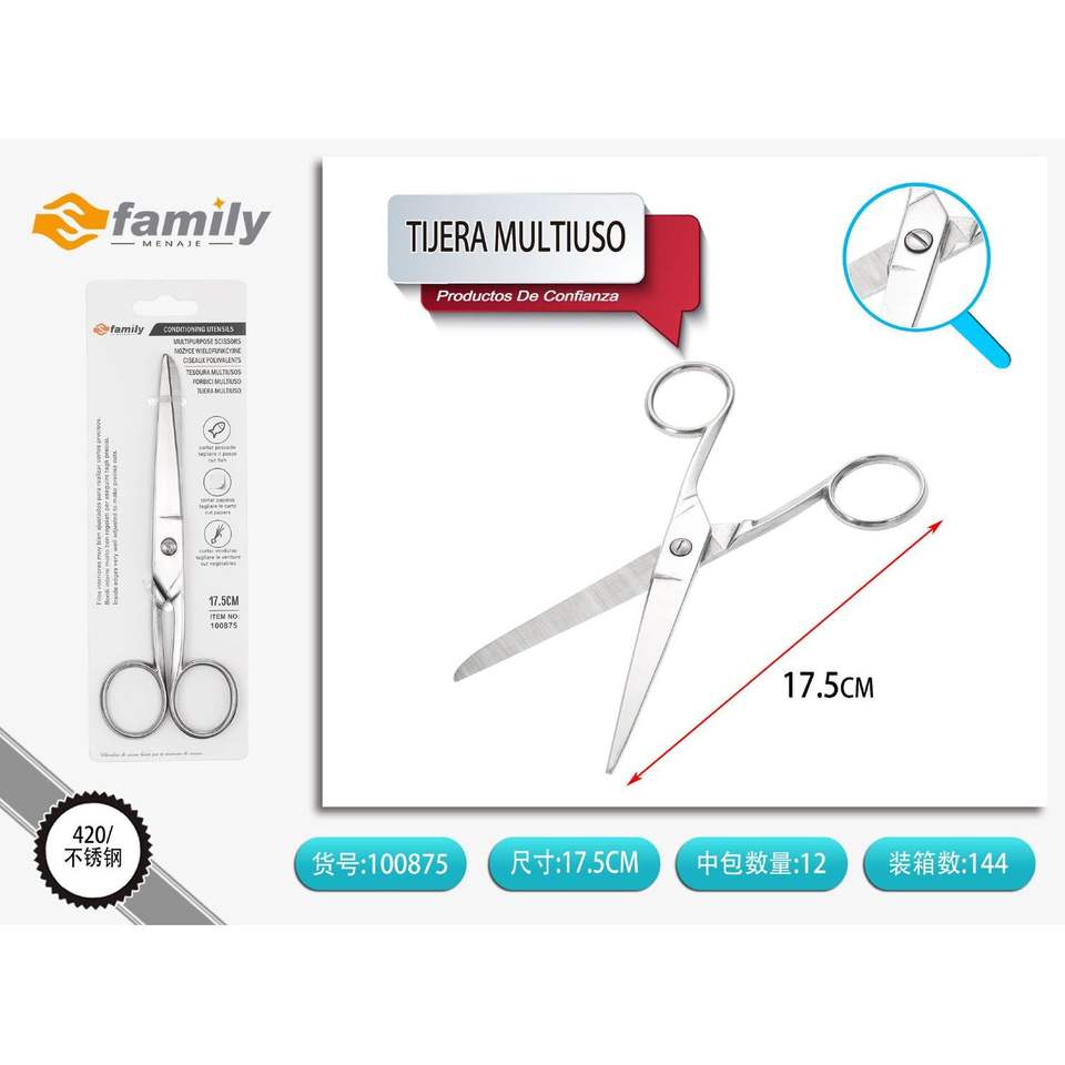 กรรไกรสแตนเลสอเนกประสงค์ขนาด18ซม. สำหรับงานหนักมีด้ามจับพลาสติกสำหรับใช้ในครัว