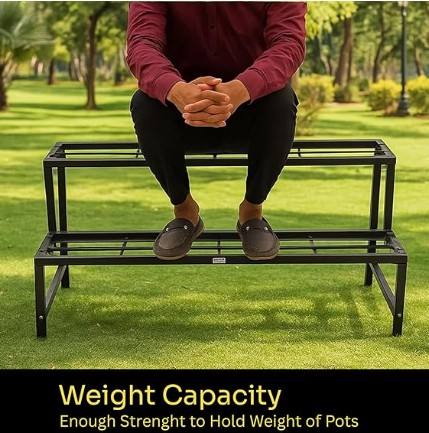 ชั้นวางกระถางต้นไม้โลหะ 2 ชั้น สำหรับใช้งานหนัก ภายในและภายนอกอาคาร ระเบียง ชั้นวางกระถางดอกไม้แบบขั้นบันได สำหรับสวน