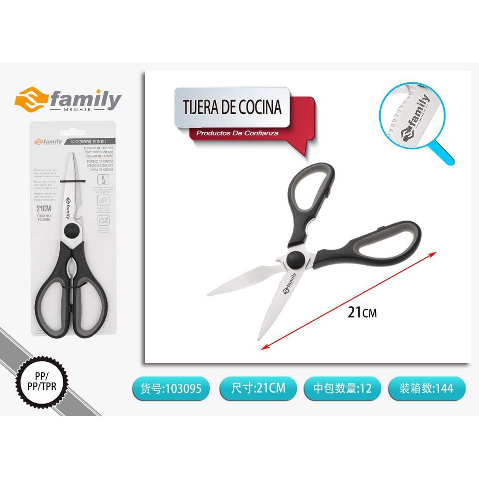 เครื่องครัวกรรไกรสแตนเลสมีดและมือจับพลาสติก21ซม. ใช้งานหนักเครื่องใช้ในครัวสำหรับตัด