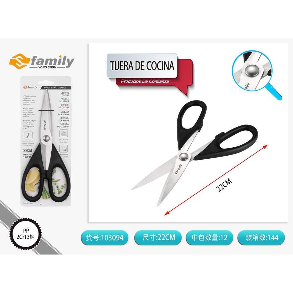 กรรไกรตัดอาหาร22ซม. สำหรับงานหนักมีดสแตนเลสและที่จับพลาสติกสำหรับตัด