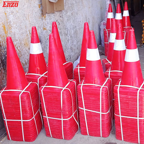 กรวยจราจรขนาด28นิ้วทำจากพีวีซีมีความยืดหยุ่นทนทานใช้ได้กับ IP68ความปลอดภัยบนท้องถนนขนาด360*360มม. สำหรับงานหนัก