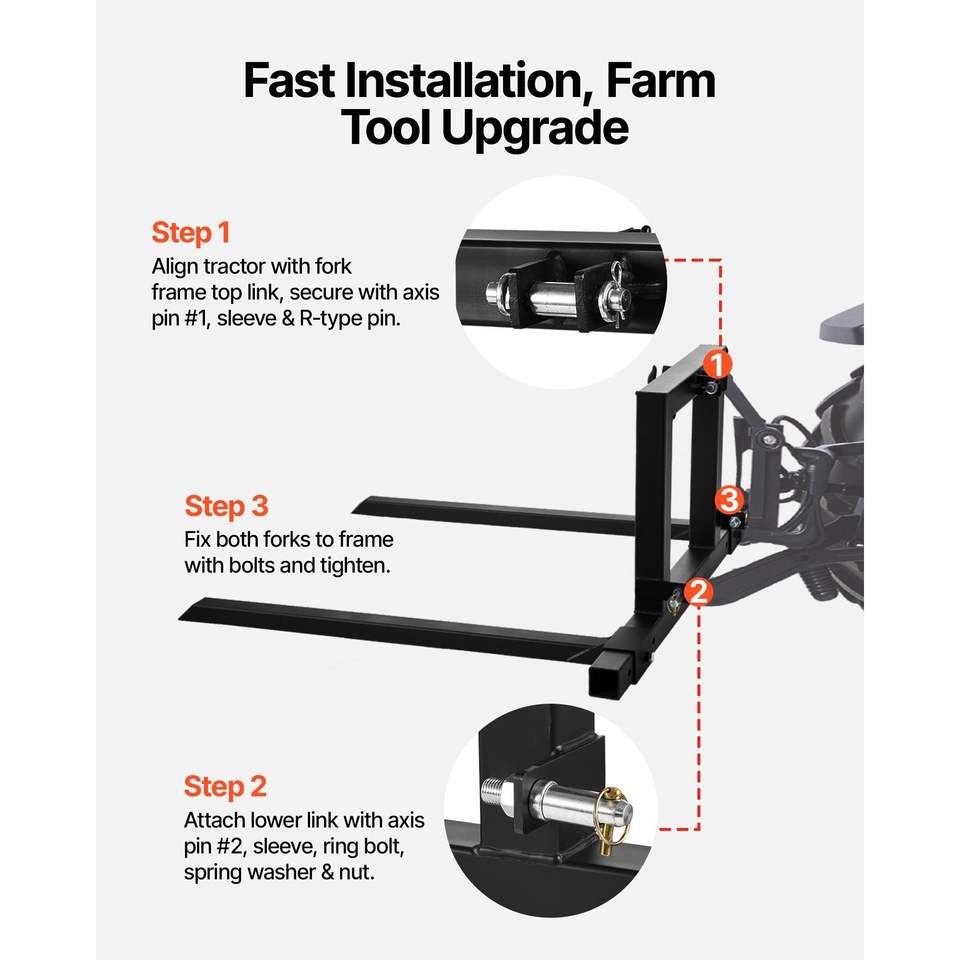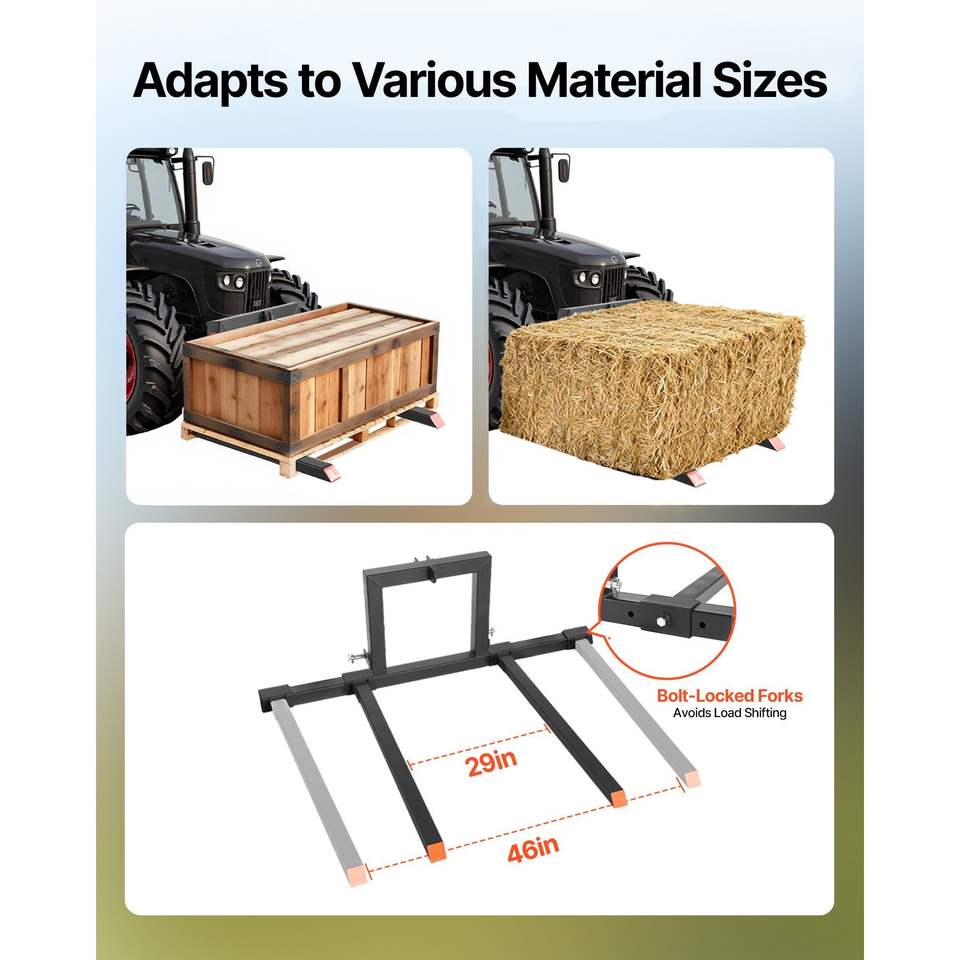ตะเกียบยกพาเลทแบบ 3 จุด สำหรับงานหนัก รับน้ำหนักได้ 1500 ปอนด์ ความยาวรวม 50 นิ้ว ปรับได้ 28.9-46 นิ้ว สำหรับรถแทรกเตอร์และอื่นๆ
