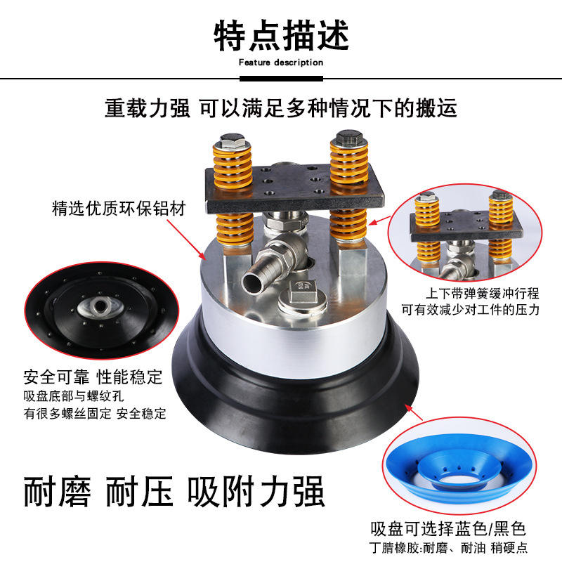 อุปกรณ์เสริมแขนหุ่นยนต์สำหรับยกของอุตสาหกรรม จุกดูดสุญญากาศยางนิวเมติกสำหรับงานหนัก ขนาด 370 มม. สำหรับบรรจุภัณฑ์แบบนิ่ม