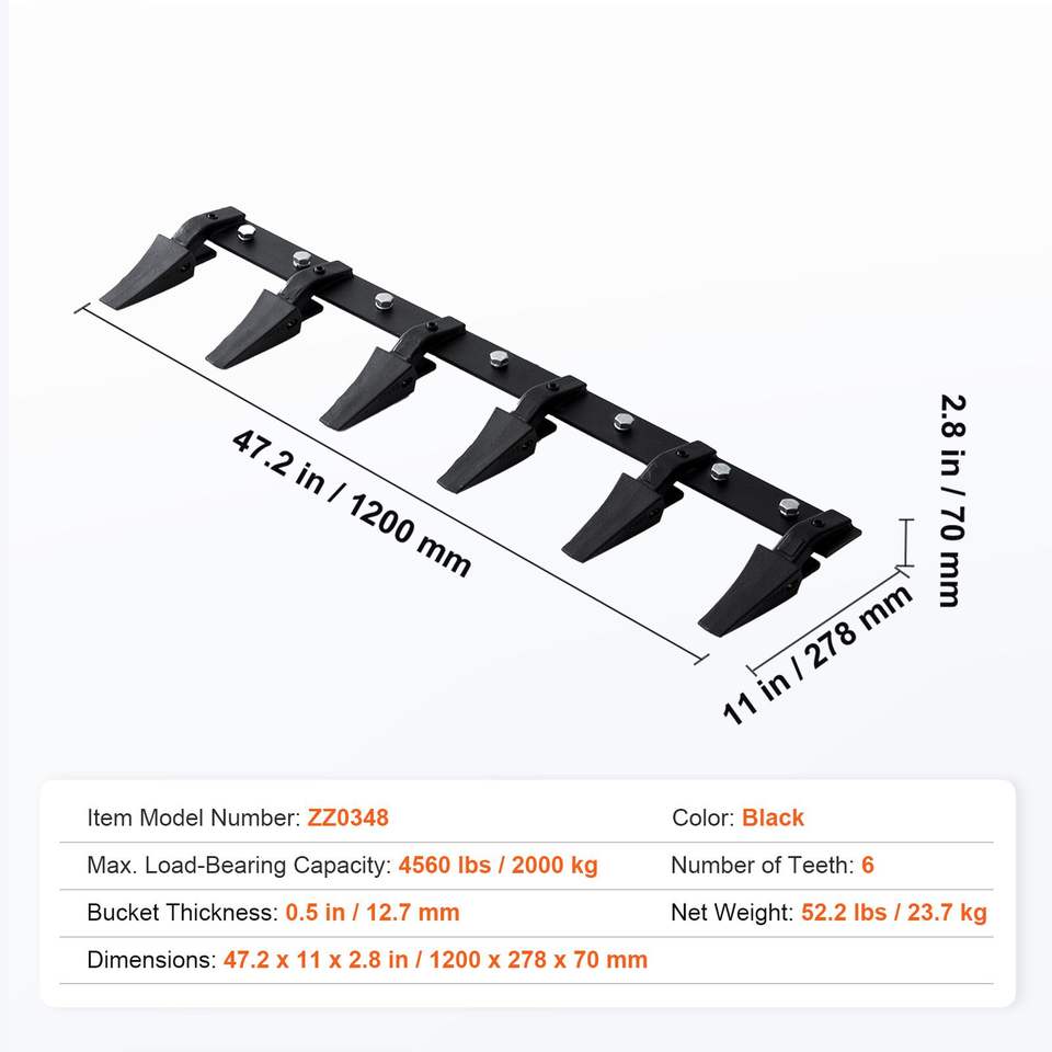 บาร์ตักหนัก 48 ฟัน สำหรับรถแทรกเตอร์แบบสกิดสเตียร์ บาร์ 6 ฟัน รับน้ำหนักได้ 4560 ปอนด์ พร้อมสลักเกลียวสำหรับรถแทรกเตอร์กำลังสูงกว่า 60 แรงม้า