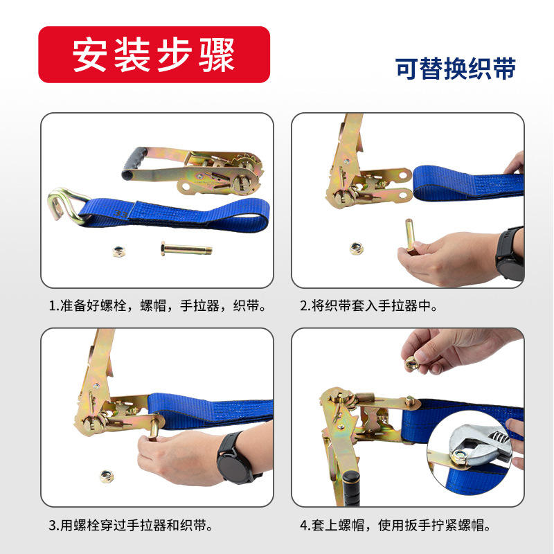 Heavy Duty 5 Ton 8m Steel Polyester Webbing 5cm Width Truck Tie Down Strap for Cargo Securing