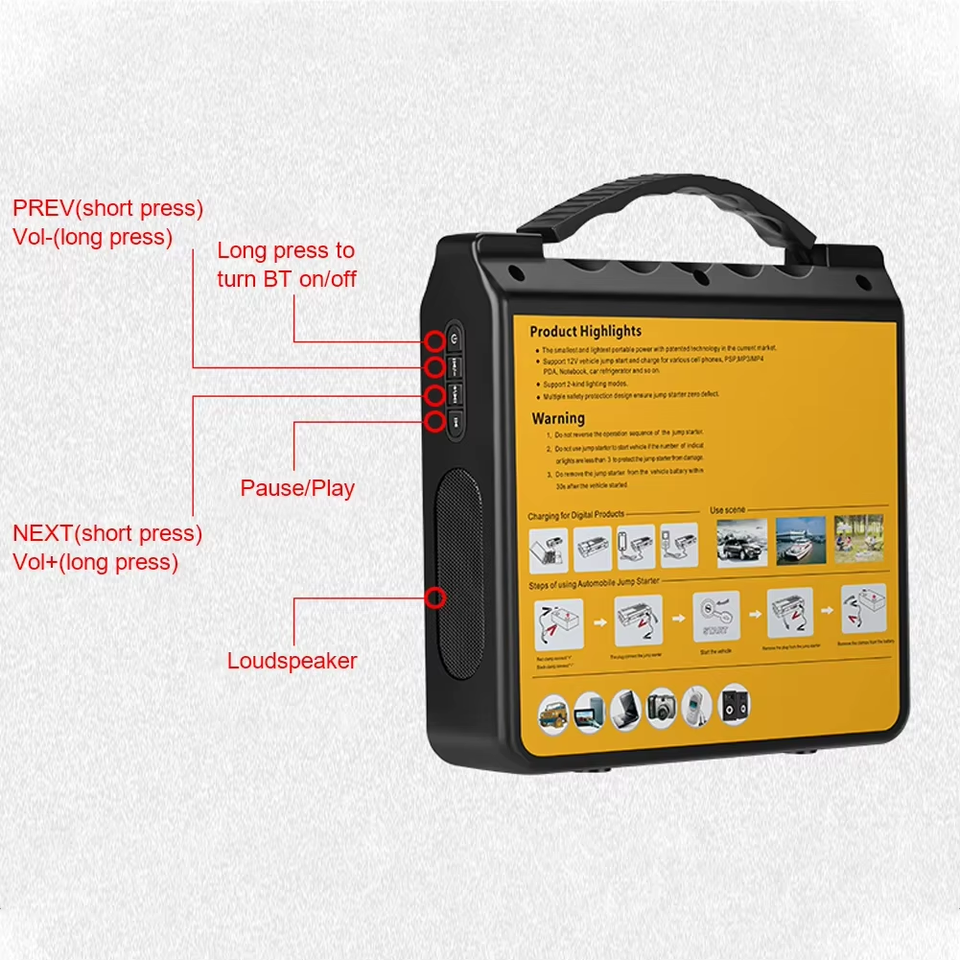 ชื่อผลิตภัณฑ์:พาวเวอร์แบงค์สำหรับรถยนต์แบบพกพา จั๊มสตาร์ท แบตเตอรี่ 12000mAh