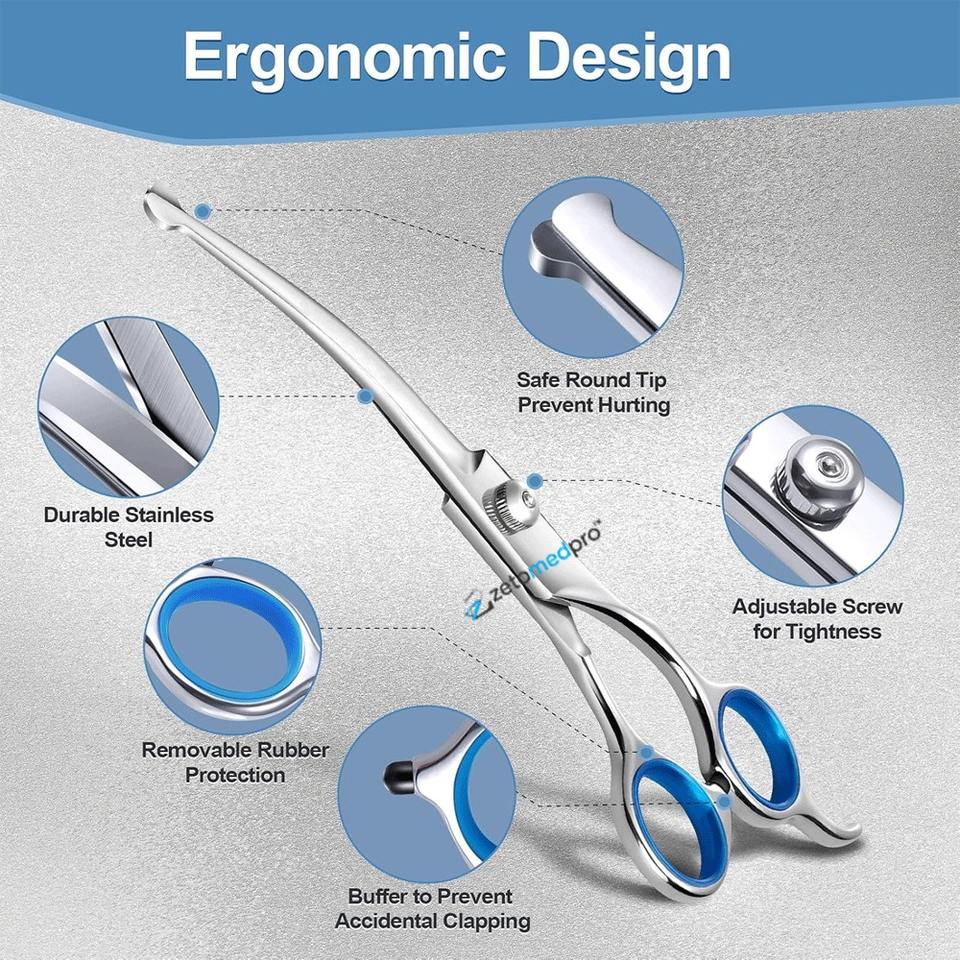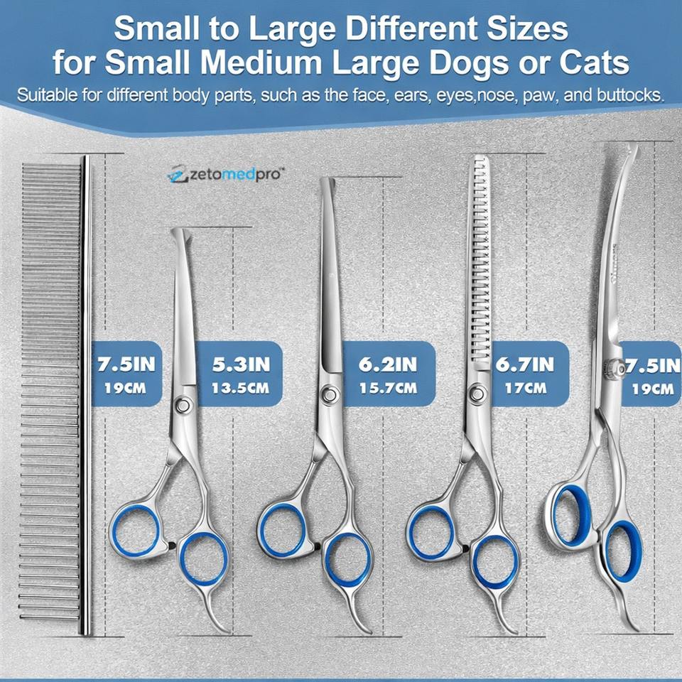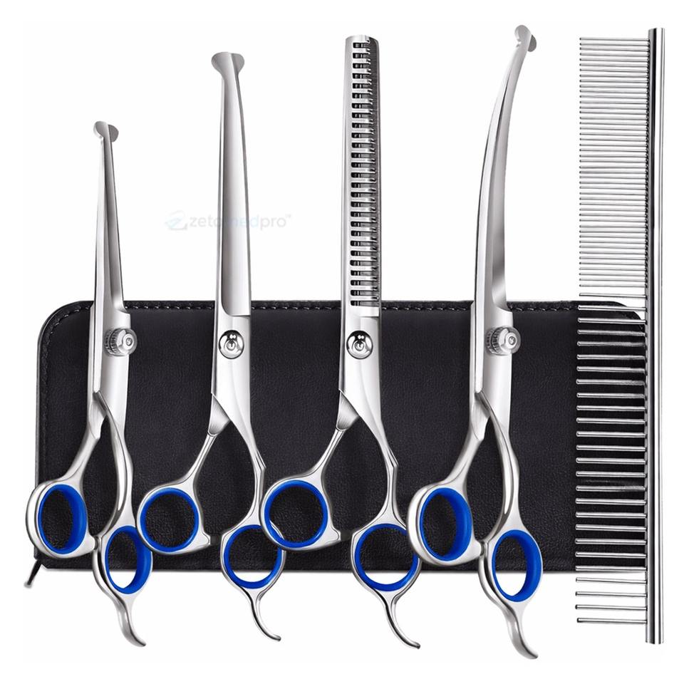 ชุดกรรไกรตัดแต่งขนสัตว์เลี้ยงแบบหนาพิเศษ 6 in 1 ทำจากสแตนเลส พร้อมปลายกรรไกรทำความสะอาดตัวเองได้ ปลอดภัย ฆ่าเชื้อด้วยอุณหภูมิสูง สำหรับสุนัขและแมว