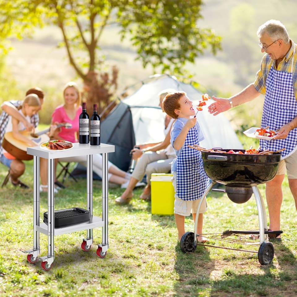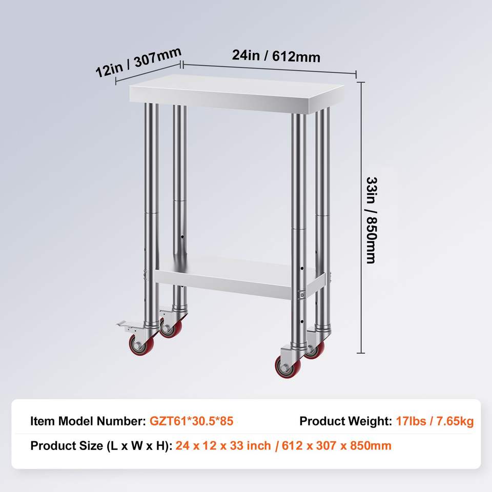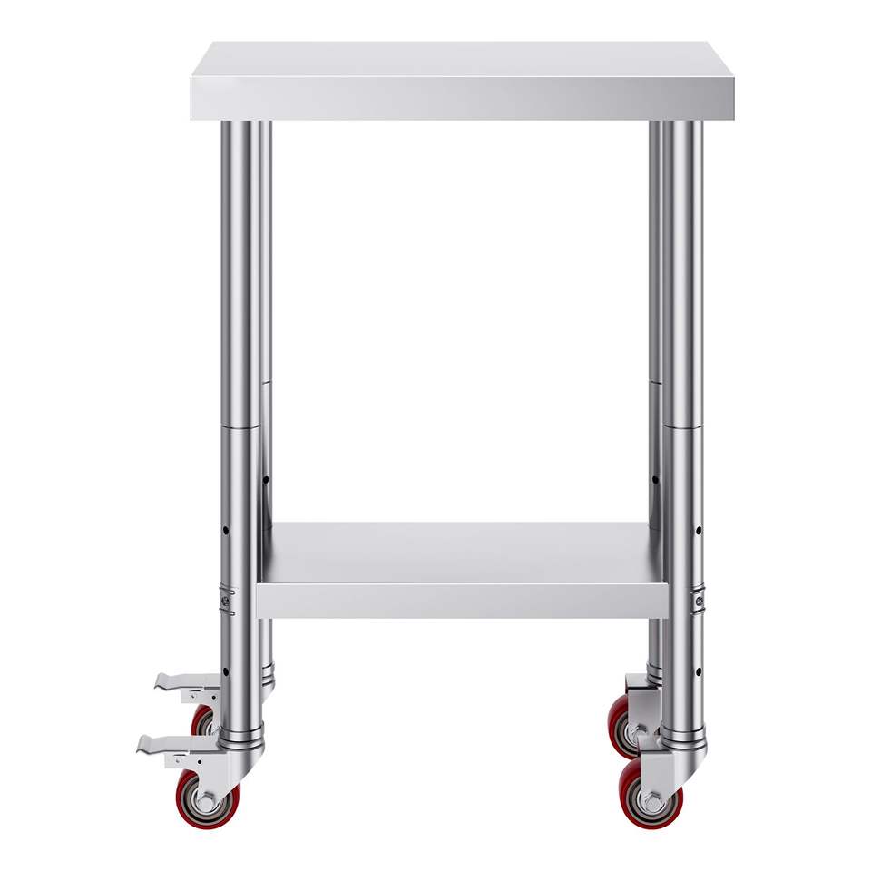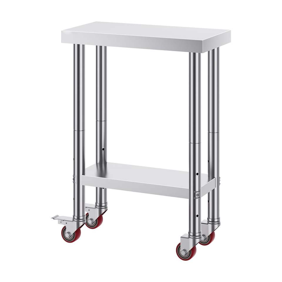 โต๊ะทำงานสแตนเลสสำหรับครัวเชิงพาณิชย์ รับน้ำหนักได้ 700 ปอนด์ ขนาด 12 x 24 x 34 นิ้ว พร้อมล้อ 4 ล้อ ปรับได้ 3 ระดับ
