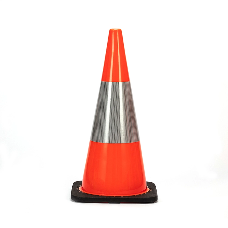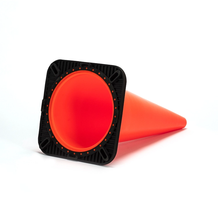 กรวยจราจรพีวีซีขนาด700มม. พร้อมฐานเตือนความปลอดภัยผลิตภัณฑ์กรวยสีดำสำหรับงานหนัก
