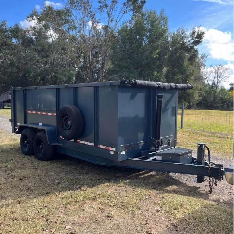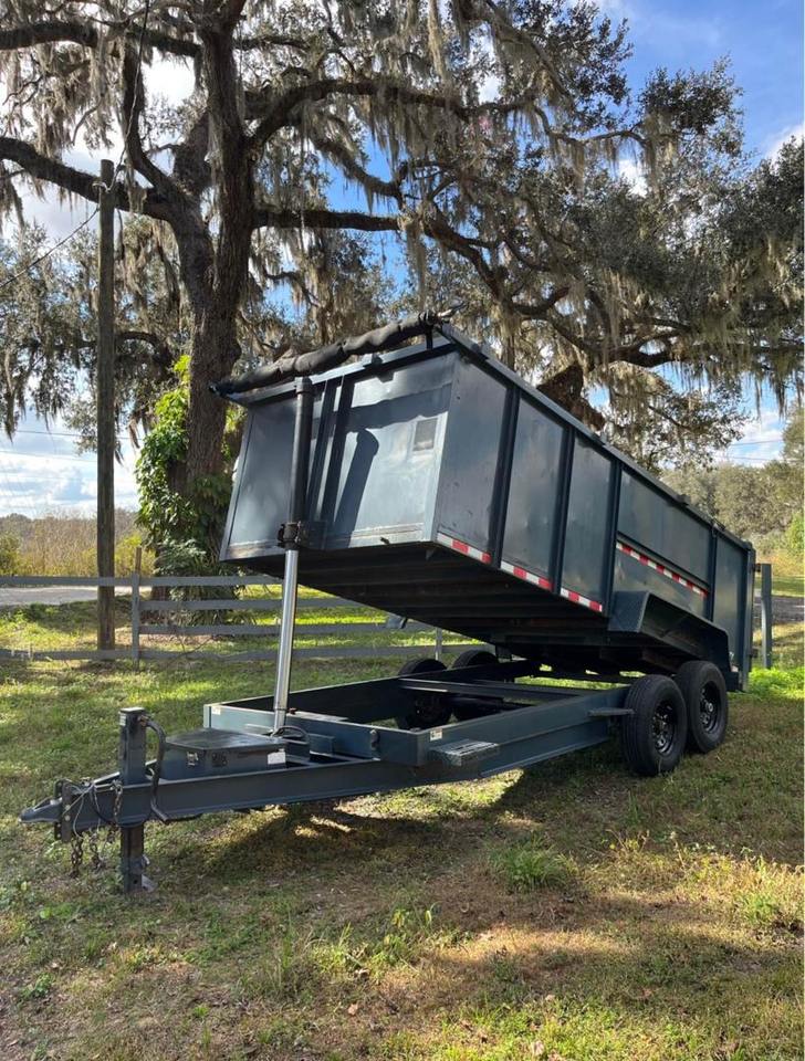 รถพ่วงดั๊มพ์สำหรับงานหนัก ขนาด 7x16 คุณภาพสูงสำหรับใช้งานในฟาร์ม ระบบไฮดรอลิกทนทาน มอเตอร์เกียร์ใหม่ โครงสร้างเพลา รถพ่วงสำหรับรถแทรกเตอร์