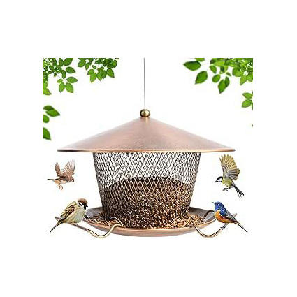 เครื่องให้อาหารนกแบบหนักแน่นพิเศษ ป้องกันกระรอก พร้อมถาดให้อาหารแบบเคลื่อนย้ายได้ และที่เก็บอาหารและน้ำแบบสองฟังก์ชั่นสำหรับนกป่า