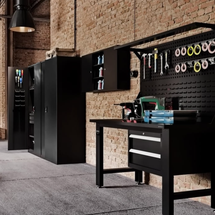 การใช้งานเฉพาะ:โต๊ะทำงานโลหะในโรงรถ