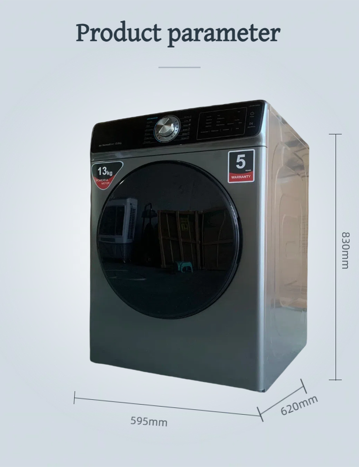 เครื่องอบผ้าอัตโนมัติแบบหนัก 13 กก. พร้อมระบบระบายอากาศและถังสแตนเลสสำหรับซักผ้าในครัวเรือน