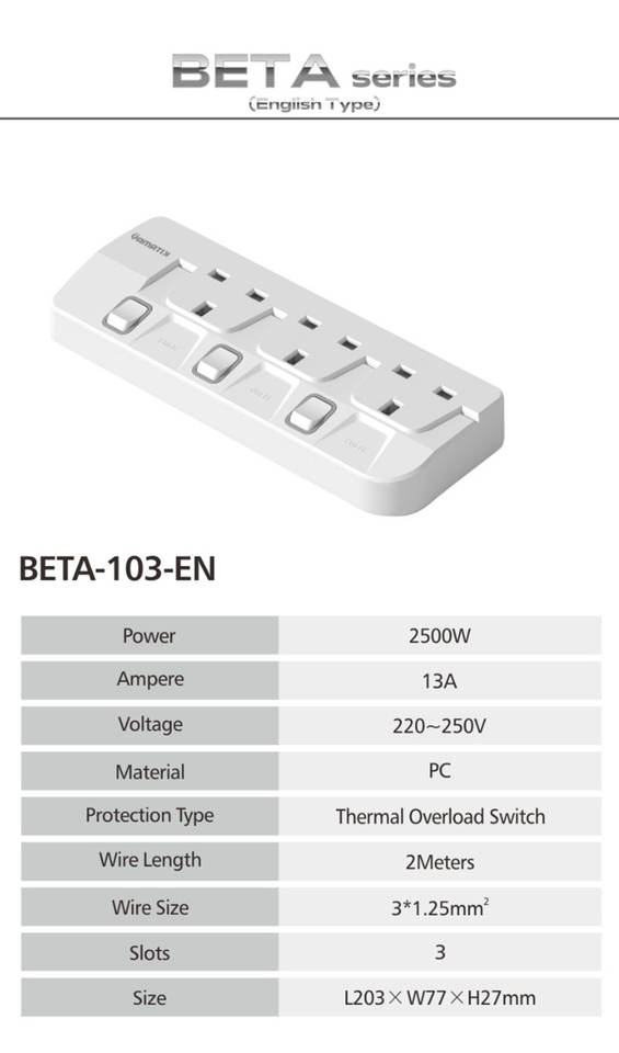 ปลั๊กพ่วงแบบหนาพิเศษ รุ่น BETA แบบ UK คุณภาพสูง ป้องกันไฟไหม้ พร้อมฝาครอบนิรภัย และสวิตช์ป้องกันไฟเกิน สำหรับใช้ในเชิงพาณิชย์ บ้าน และสำนักงาน