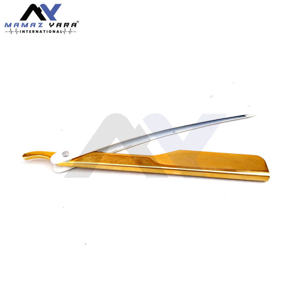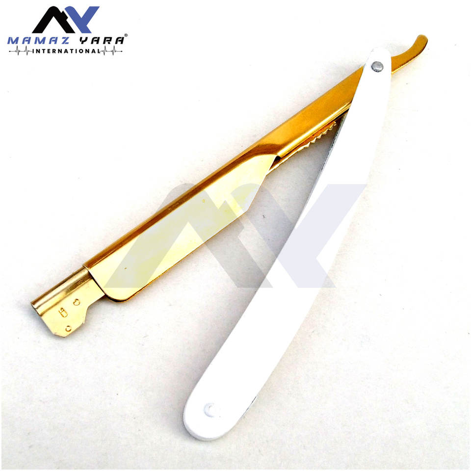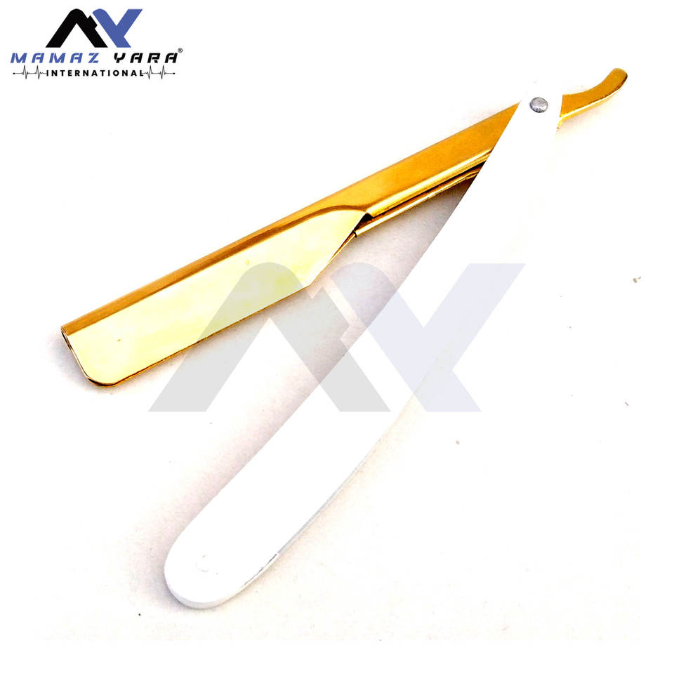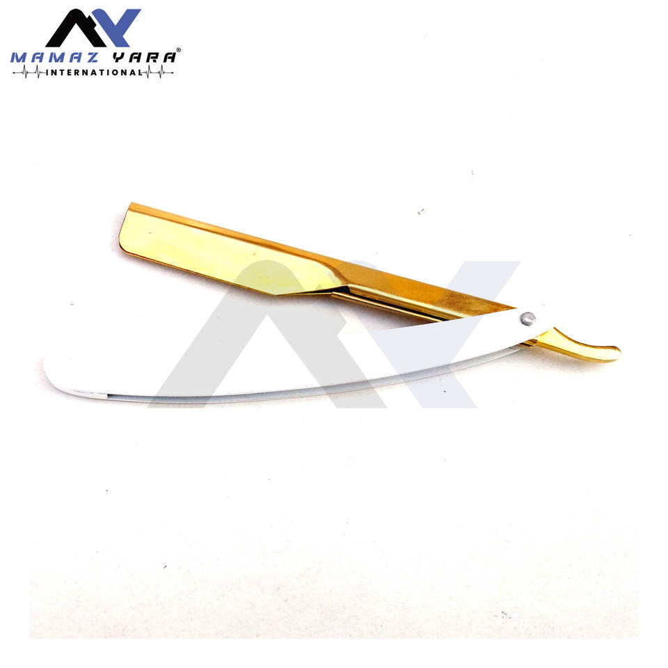 มีดโกนหนวดแบบพับได้ สแตนเลสสตีล คุณภาพระดับมืออาชีพ สีทอง สำหรับช่างตัดผม