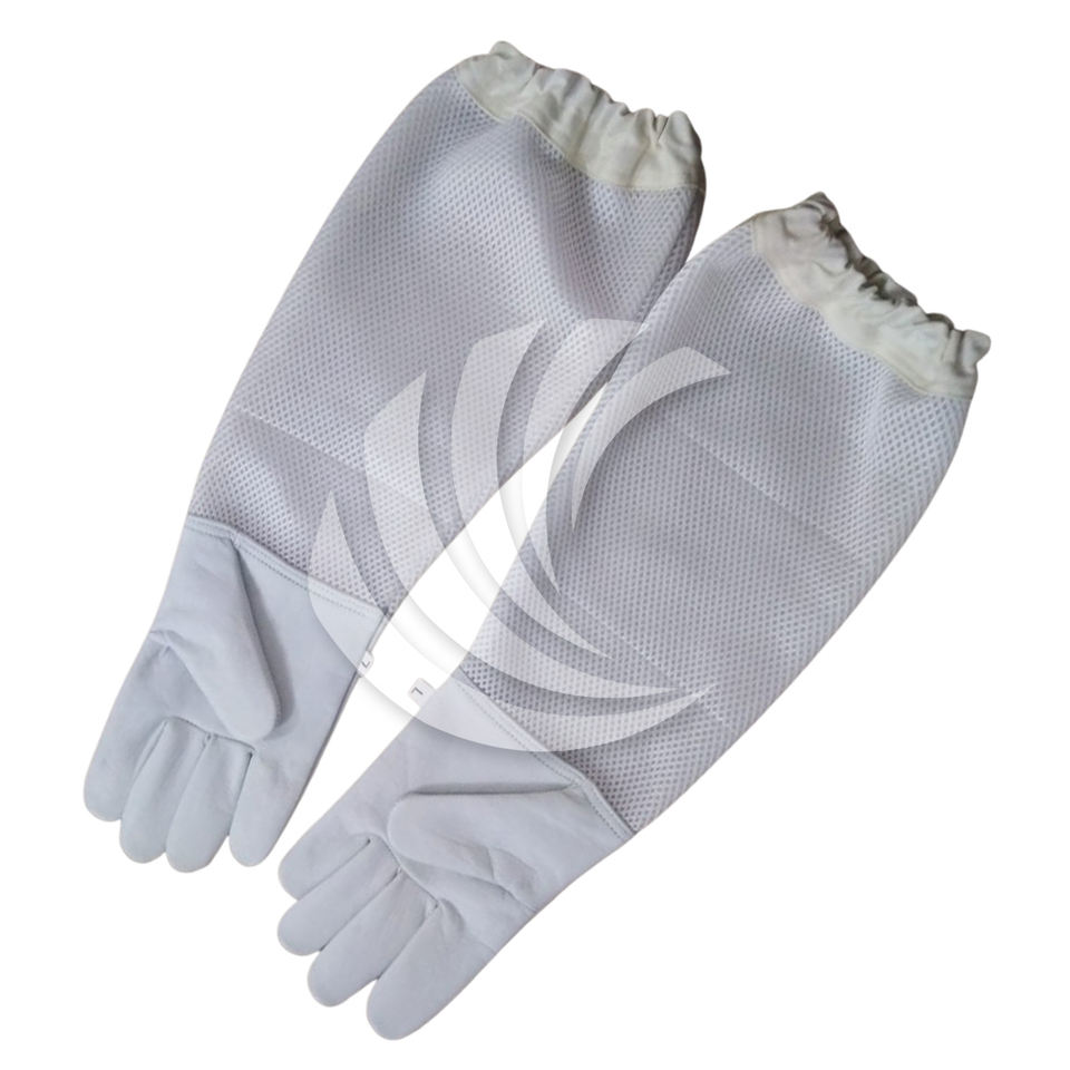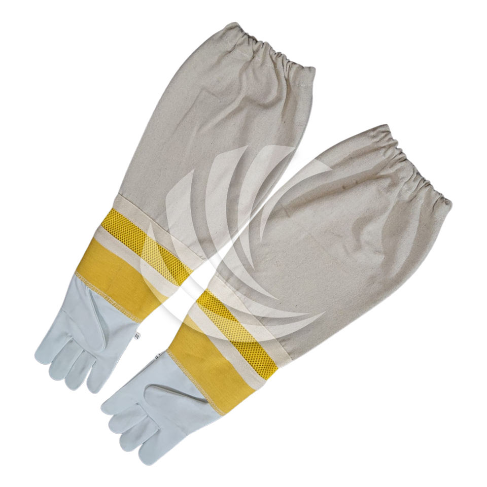 ถุงมือเลี้ยงผึ้งแบบหนาพิเศษ พร้อมฝ่ามือหนังวัวหนา และแขนผ้าใบยาวพิเศษเพื่อการป้องกันการถูกต่อยสัตว์ได้อย่างเต็มที่