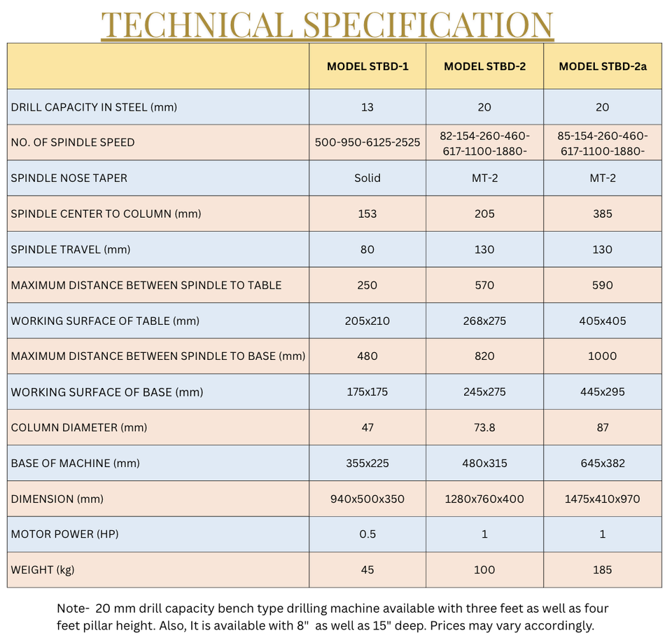 เครื่องเจาะแท่นความแม่นยำสูง 20 มม. รุ่น SuperTech STBD-2a