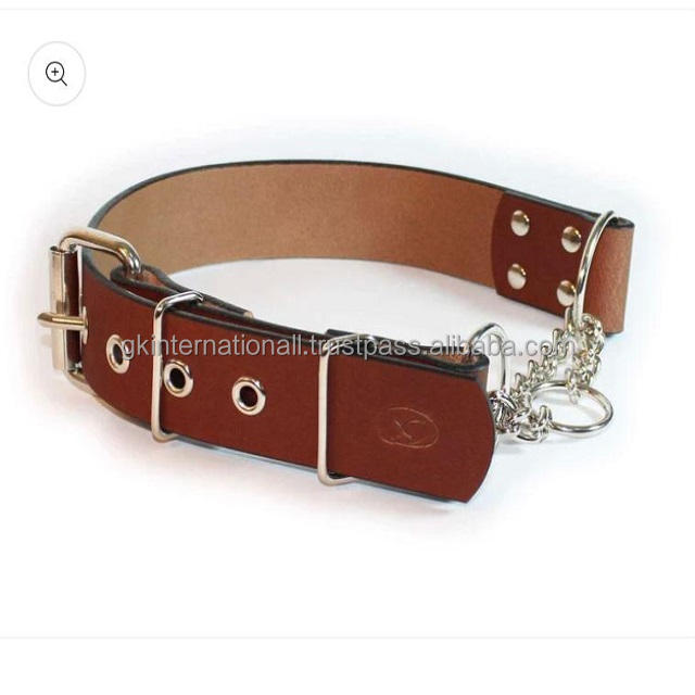Heavy Duty Big Dog Adjustable 1.5 Leather Martingale Chain Leather Dog Collar in 3 Variant Colors With Nickel Plated Hardware
