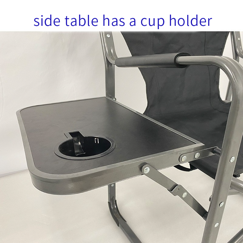 เก้าอี้อลูมิเนียมพับได้สำหรับงานหนักพร้อมโต๊ะข้างและกระเป๋าด้านข้างรองรับน้ำหนัก120กก.
