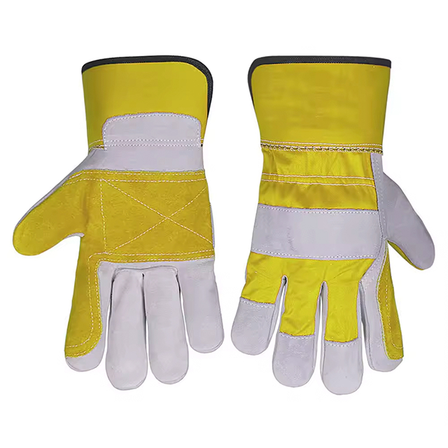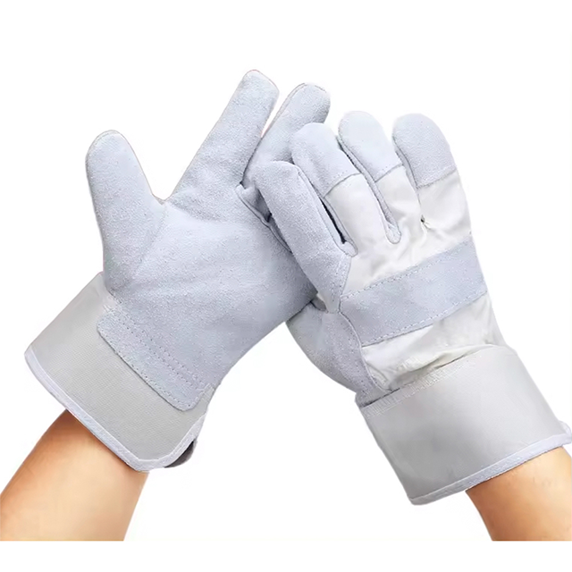 ถุงมือนิรภัยหนังวัวแยกชิ้นสำหรับงานหนักถุงมือนิรภัยสำหรับงานอุตสาหกรรมแบบปลอกยางสำหรับป้องกันมือทำงาน