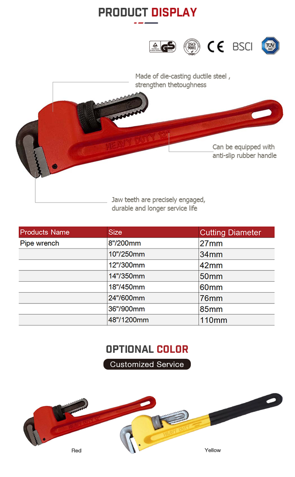 ประแจท่อเมตริกแบบปรับได้สำหรับงานหล่อเหล็กคาร์บอนสำหรับงานหนัก