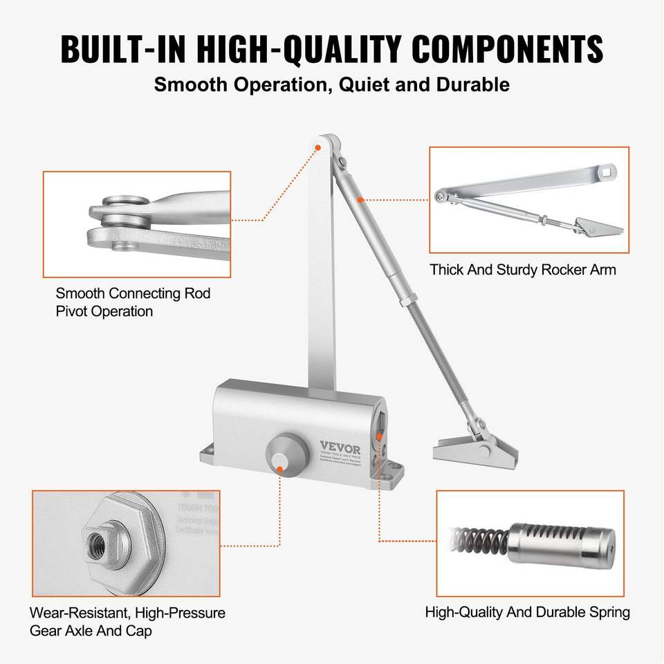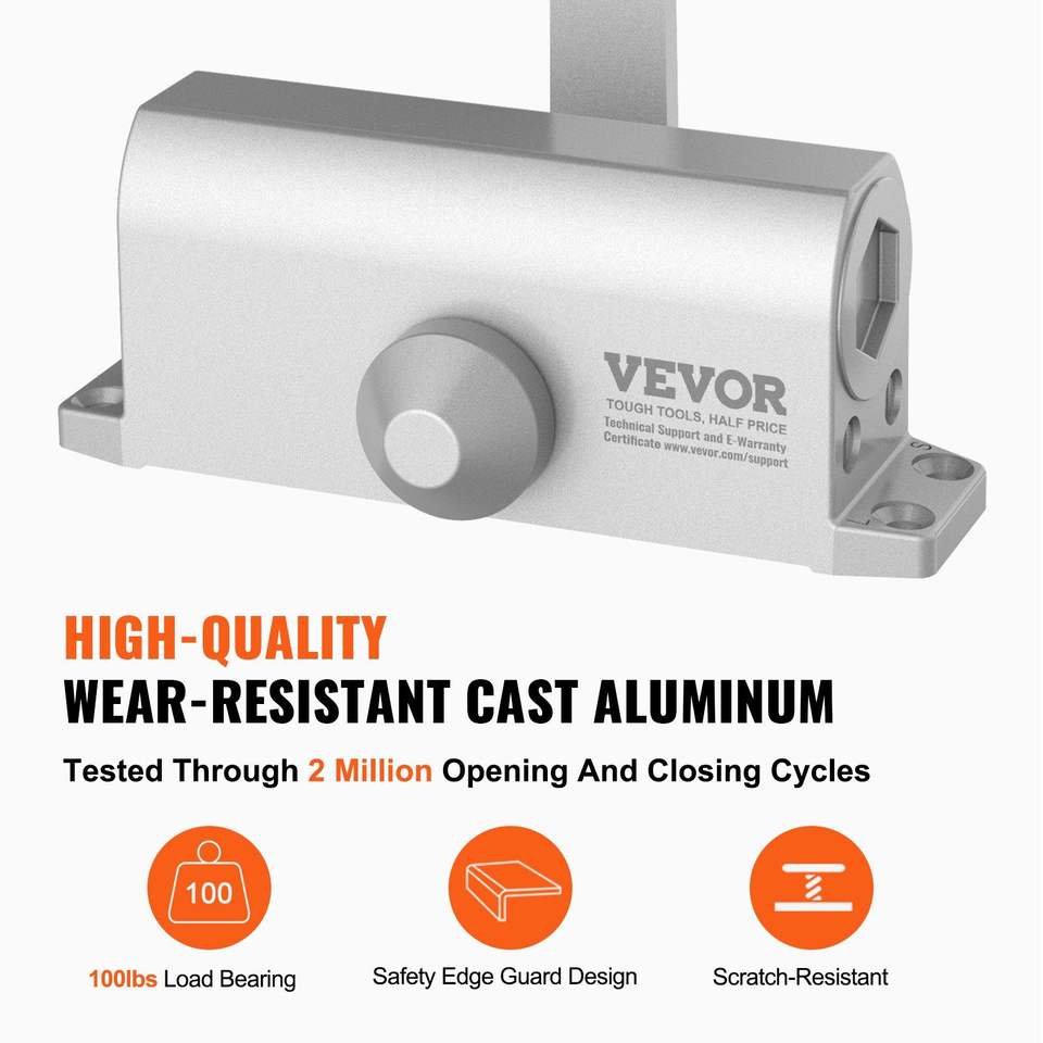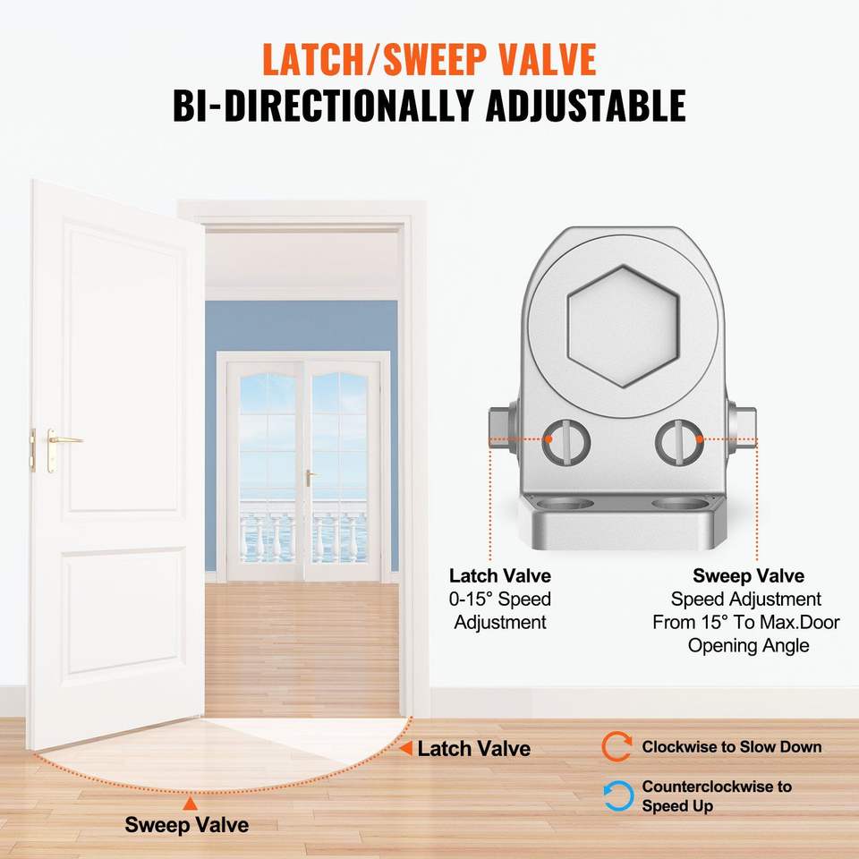 Heavy Duty Cast Aluminum Body Silver Automatic Door Closer Hydraulic Buffer 100 Lbs Adjustable Door Weights Easy Install for