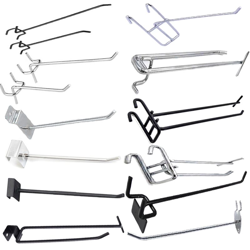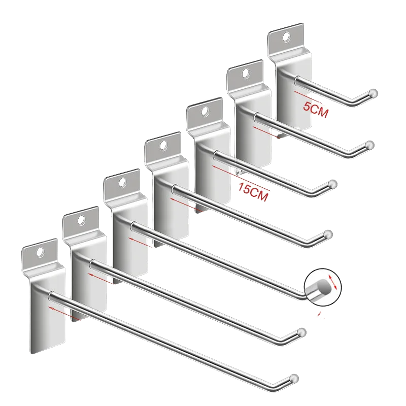 ตะขอแขวนแผงเหล็กชุบโครเมียมแบบหนาพิเศษ ขนาด 200/300 มม. แบบด้านเดียว สำหรับใช้ในซูเปอร์มาร์เก็ต