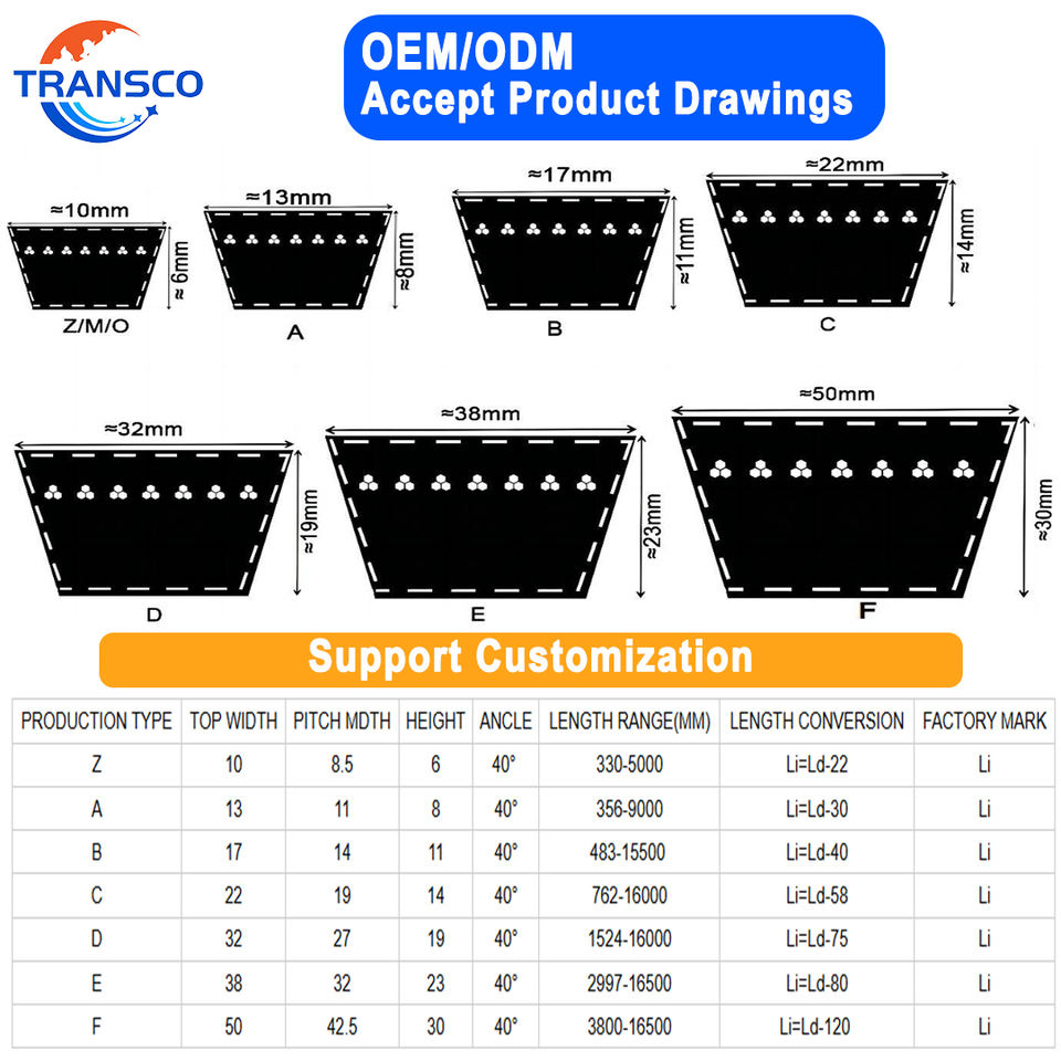 สายพานวีแบบคลาสสิกสำหรับงานหนัก สายพานวีหุ้มยาง สายพานวีแบบหุ้ม สำหรับระบบขับเคลื่อนเครื่องอัดรีด